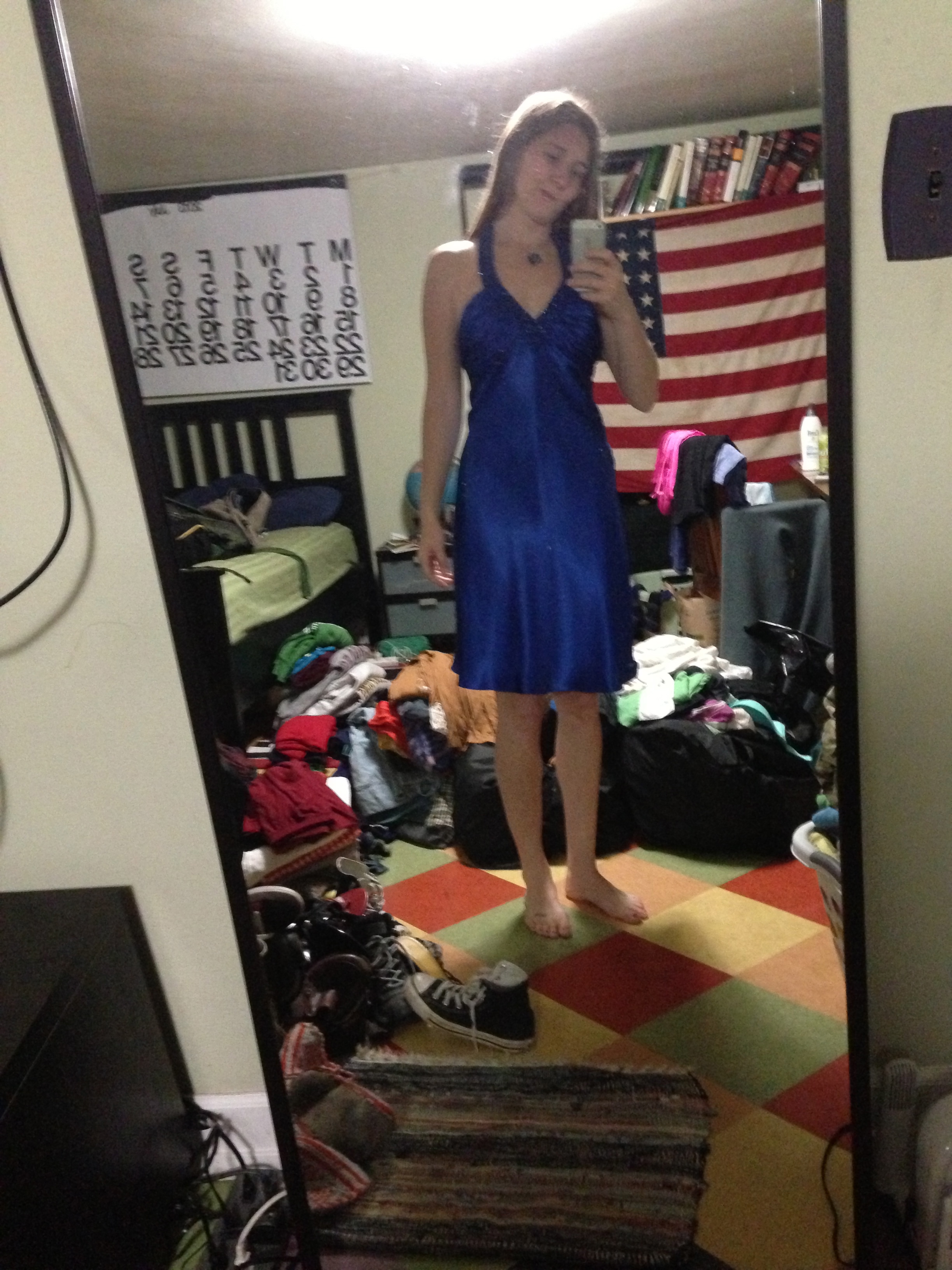 like that beautiful cobalt blue satin dress that i mentioned in my last blog post. i bought it in 2008 for a fancy valentine’s day dinner at a fancy restaurant in a fancy hotel. the one where i was definitely over dressed but did not care at all because i was so in love that no one else in the room mattered. (ex protected in this modified version of a prom photo.)