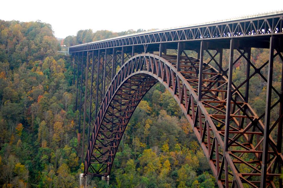 - the new river gorge. sometimes when you spend a month in one place, you want to visit somewhere else. and since i was with someone who was trying to see as many of america’s climbing destinations as possible before heading back to australia, we rented a car and headed to the new river gorge in west virginia for a long weekend. we were half running away from a kentucky cold front and half just running away. with fall in full swing, the four hour drive was beautiful. the climbing was beautiful. we stayed in a cheap hotel room. i don’t think i have ever been so excited to see a bathtub in my life. endless hot water! and a toilet just steps away from the bed! and the restaurants in fayetteville are actually pretty great. it’s a cute little town with a very big single span arch bridge.