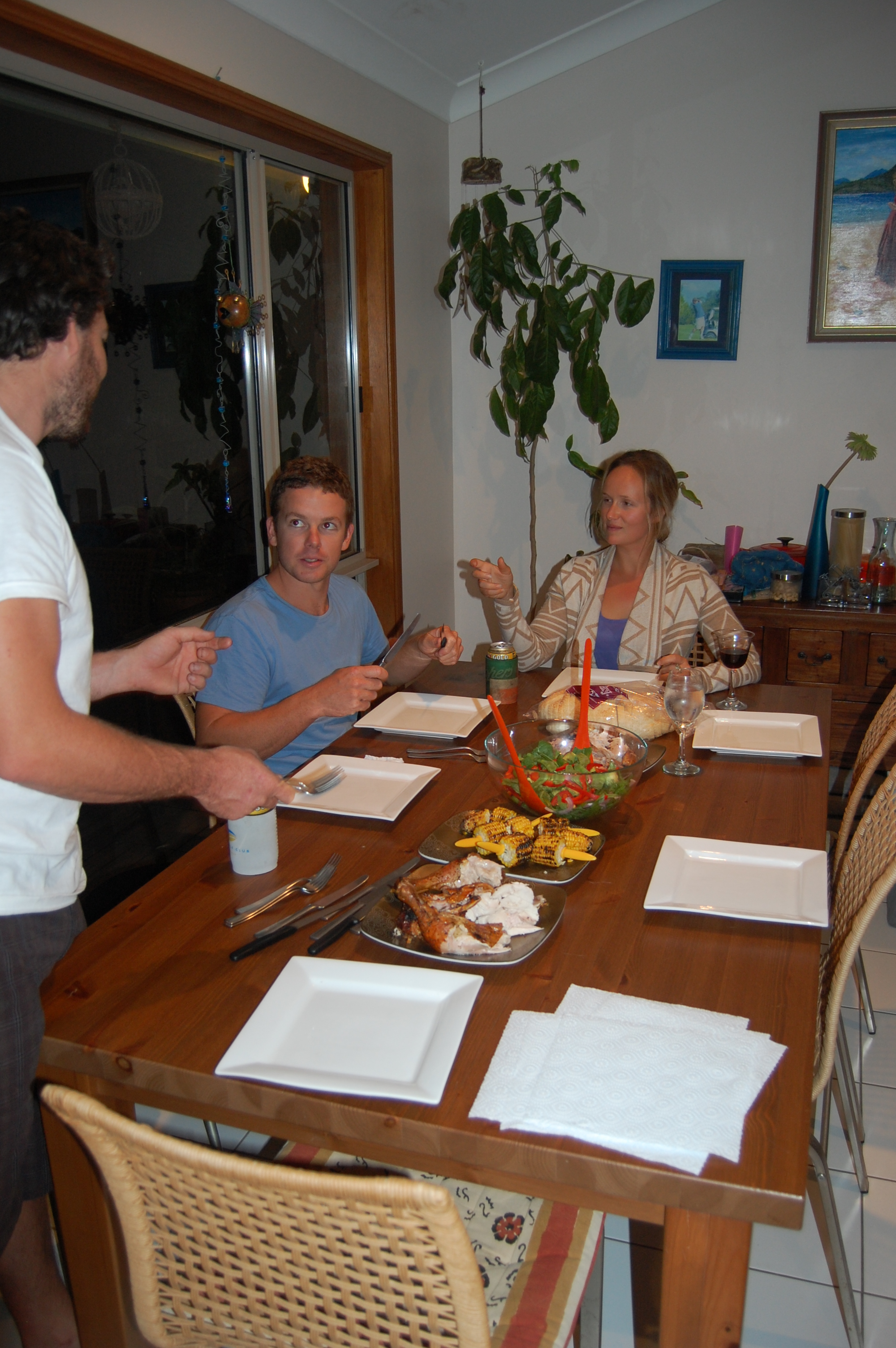 it was weird to not be around my family for turkey and rice-a-roni and mashed potatoes and pumpkin pie, but a chook with a beer can up its bum on the barbie was a nice substitute.