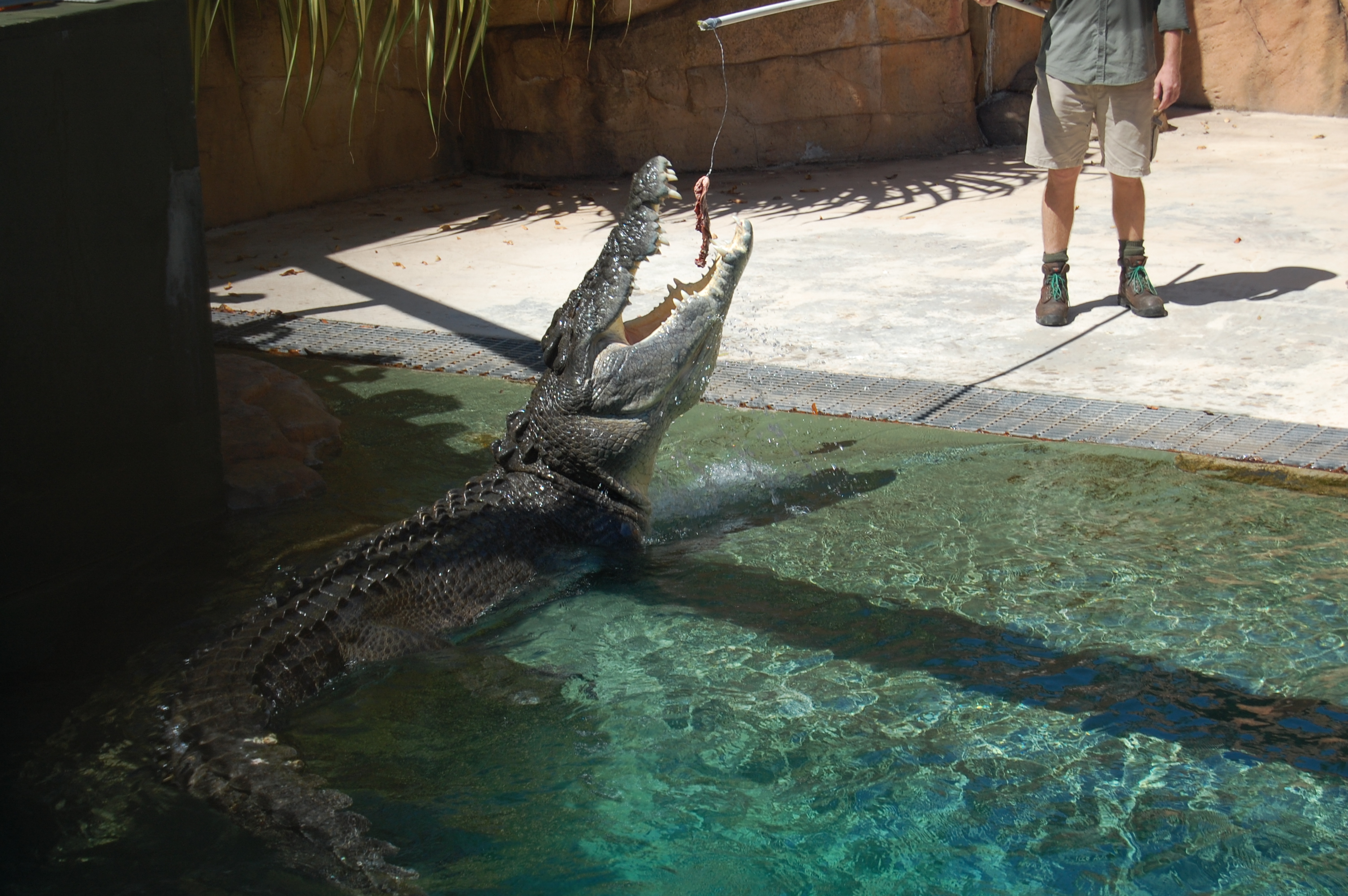 - crocosauras cove. as much as i want to see a croc in the wild, i of course never actually want to see a croc in the wild. so i settled for second best: visiting a reptile and crocodile aquarium smack dab in the middle of downtown darwin complete with deadly (and non-deadly) snakes, too many kids of goannas, some stingrays, fish that spit at you, and five full grown crocodiles. and who knew feeding baby crocs could be so much fun? it’s like taunting a dog with a bone… (a dog that could rip you to pieces instantly.)