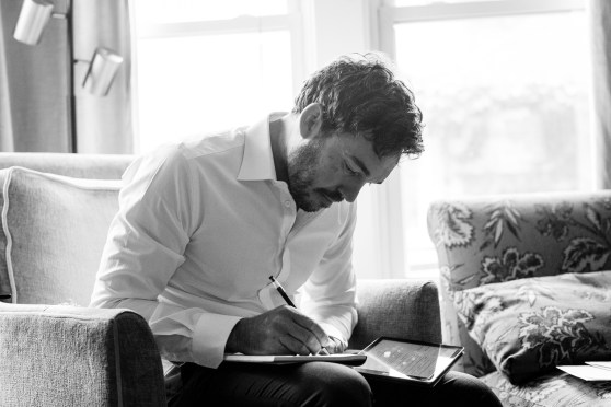 the groom and his ridiculous crew of groomsmen reluctantly got ready in their lakefront airbnb.